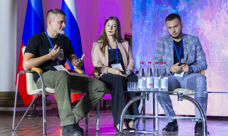В дискуссии «Гражданский долг во имя мира» приняли участие руководитель Общественной организации «Молодая Республика» Кирилл Макаров, координатор проекта «Волонтер» Общественного движения «Мир Луганщине» Антонина Машкова, руководитель «Народной дружины» Владимир Тараненко, а также старшеклассники, студенты и их наставники из ЛНР и ДНР.