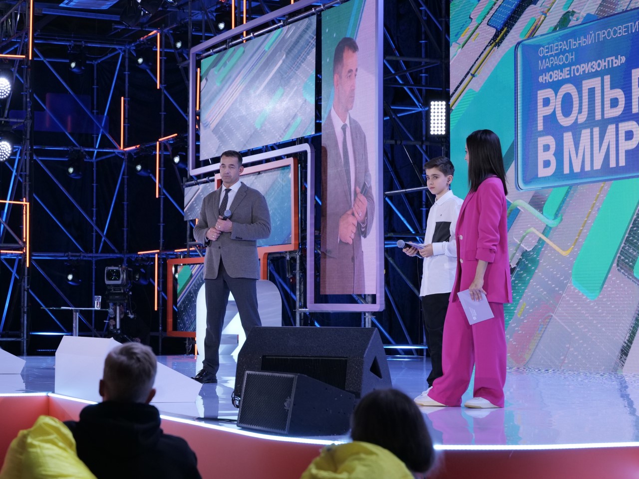 Программа первого дня федерального Просветительского марафона «Новые горизонты» Российского общества «Знание» включает приветственное выступление Первого заместителя Руководителя Администрации Президента Российской Федерации Сергея Кириенко, выступления заместителя Руководителя Администрации Президента РФ — пресс-секретаря Президента РФ Дмитрия Пескова, Министра иностранных дел РФ Сергея Лаврова, Министра цифрового развития, связи и массовых коммуникаций РФ Максута Шадаева, Заместителя Председателя Правительства РФ Дмитрия Чернышенко и других.