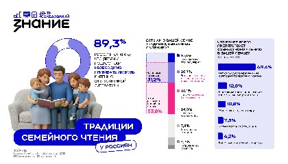 «Семейное чтение остается для россиян важной культурной и воспитательной практикой. Мы видим, что в обществе есть не только уважение к самой традиции совместного чтения, но и очень высокий, почти единодушный запрос на то, чтобы молодежь знакомилась с классической и современной отечественной литературой. Именно в семье закладывается первый интерес к книге, формируется привычка размышлять, обсуждать прочитанное, лучше понимать свою культуру и язык. Поэтому так важно поддерживать семейные практики чтения и создавать для родителей и детей больше возможностей проводить это время вместе, – отметил Максим Древаль, генеральный директор Общества 'Знание».