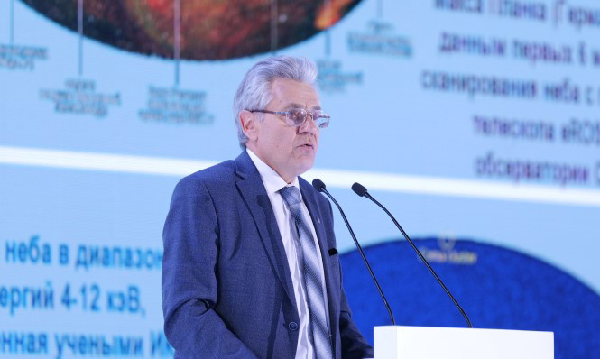 Большое внимание президент РАН уделил освоению космоса, отметив, что в 2019 году Россия запустила уникальный космический аппарат «Спектр РГ» в одну из точек Лагранжа для дистанционного зондирования Земли. Также он рассказал о детекторе нейтрино на Байкале — самом большом в Северном полушарии.