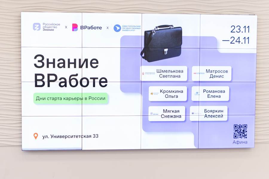 Своими практическими советами со студентами поделилась директор Центра карьеры и трудоустройства Севастополя Марина Рожкова. Представители нескольких крупных компаний и организаций, работающих в Севастополе, рассказали будущим специалистам об актуальных кадровых потребностях и условиях работы. Среди них были руководитель департамента маркетинга туроператора «Кандагар» Елена Романова, исполнительный директор компании ITC Solutions Денис Матросов, начальник отдела кадров УМВД г. Севастополя Светлана Шмелькова, генеральный директор компании «Астрал» Снежана Мягкая, федеральный тренер АТ РСМ, тренер севастопольского регионального тренингового центра «СКИЛЛ» РСМ Лилиана Ефремова, заместитель управляющего симферопольским филиалом АБ «РОССИЯ» Алексей Бояркин, а также менеджер по персоналу компании «Монолит» Анастасия Адиева. Спикеры рассказали студентам, каких компетенций ждут от них на рабочем месте, как правильно организовать свое время, и познакомили с преференциями для молодых специалистов.