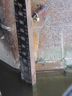 | Амстердамский футшток | Используется в большинстве стран Европы[5]. Нулевая отметка в центре Амстердама установлена на высоте 9 футов 5 дюймов (287.02 см[6]) над уровнем моря. От точки вблизи Амстердама ведут отсчёт высоты в Дании и Швеции[3]. |