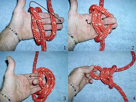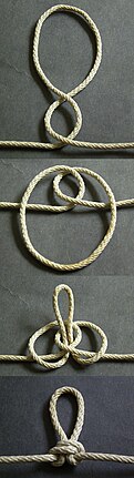 Второй же способ кажется более понятным, однако здесь также есть свои тонкости — при завязывании можно перепутать оборот узла и продеть петлю не в той точке. Однако при выполнении нижеследующих шагов узел должен получиться правильным, без потери своих функций[4].