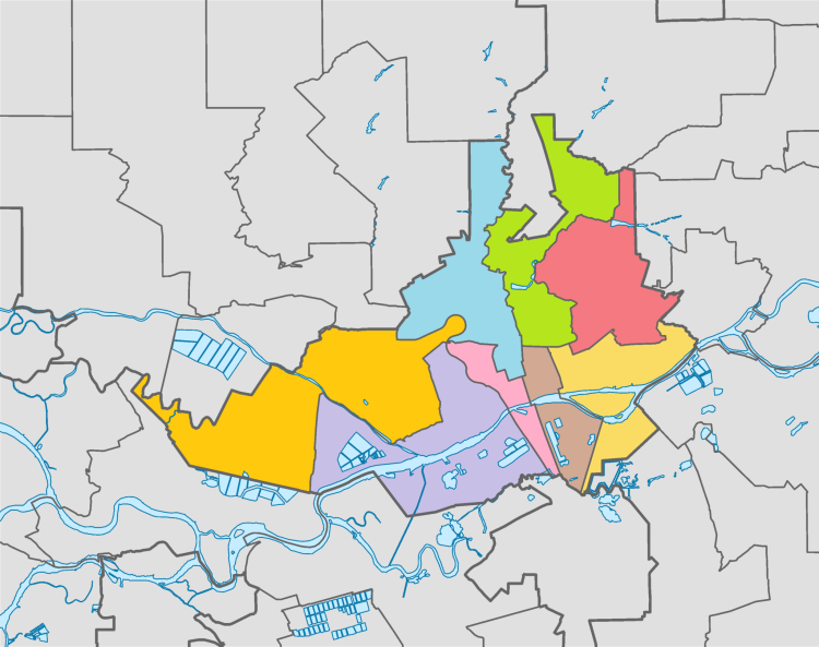 Районы города как внутригородские административно-территориальные единицы не являются муниципальными образованиями[2]. Границы районов зафиксированы актами об образовании этих районов[2].