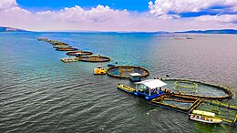 Наиболее распространённым и экономически эффективным направлением индустриальной аквакультуры является выращивание рыбы в садках, установленных в естественных водоёмах, а также производство товарной продукции в условиях закрытых бассейнов с установкой замкнутого водоснабжения (УЗВ-комплексы)[2].
