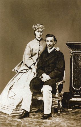 Император Александр III женился на датской принцессе Луизе Софии Фредерике Дагмар, в православии взявшей имя Марии Федоровны. Их свадьба состоялась в 1866 году[1]. Но изначально принцесса Дагмар была невестой старшего брата Александра — наследника престола Николая. В 1864 году, приехав в Данию, Николай сделал предложение принцессе Дагмар, дочери короля Кристиана IX и королевы Луизы. Девушка ответила согласием. Состоялась помолвка. После этого, Николай Александрович поехал в путешествие по Европе и заболел. Принцесса Дагмар приехала к нему в Ниццу, чтобы проведать, но вскоре цесаревич умер от туберкулезного воспаления спинного мозга. В 1866 году его младший брат Александр, будучи уже наследником престола, заехал в гости в Данию к Дагмар, где и состоялась помолвка. Через три месяца Дагмар уехала в Россию и вышла замуж за Александра. По воспоминаниям современников, отношения между супругами сложились очень хорошие и брак был удачным[8].