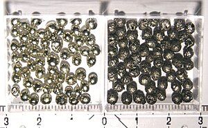 | Сурьма | Сурьма обладает четырьмя аллотропными модификациями, которые существуют при различных давлениях. Кроме того, известны три аморфные формы этого элемента: взрывчатая, чёрная и жёлтая сурьма. Наиболее стабильной и устойчивой является металлическая модификация, характеризующаяся серебристо-белым цветом с синеватым отливом[1]. |