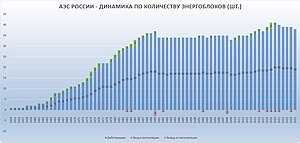 Калининская АЭС начала работу ещё в СССР (1-й блок — 1984 г., 2-й — 1986 г.), но в постсоветский период были достроены ещё два энергоблока: