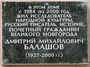 - В Великом Новгороде создан Культурный фонд им. Д. М. Балашова, а на его доме установлена мемориальная доска[10].
