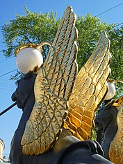 Главной особенностью моста стали фигуры четырёх крылатых львов, созданные скульптором Соколовым Павлом, который оценил свой труд в 4000 рублей. Изначально наставники фонда не желали выплачивать такую сумму, но Вильгельм Треттер настоял на выплате этой суммы. Крылья львов и элементы ограждения были покрыты сусальным золотом. В конце XIX века фонари, установленные на головах львов были украдены. Во время восстановления элементов была потеряна ограда[3].