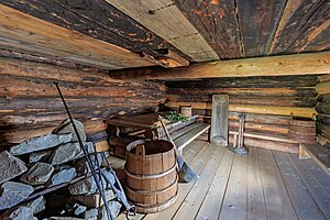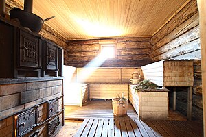Чёрная или курная баня — баня, отапливаемая печью без трубы[45].