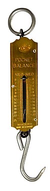 | Простой (русский) безмен | Рычажные весы с переменной точкой опоры. | Петля, за которую держат весы, перемещается по стержню для уравновешивания груза. Простая и распространённая в быту конструкция. |