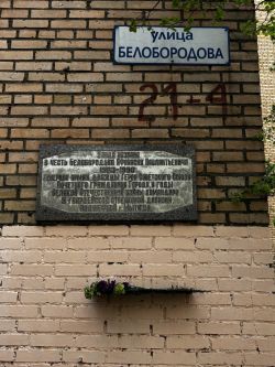 - Имя генерала Белобородова присвоено Баклашинской средней школе, на фасаде которой установлена мемориальная доска с его портретом (2003 год).