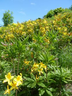 С высотой растительность меняется: появляются деревья высокогорья. Это низкорослые, ветровые формы берёзы и бука, рябины и ильмы. Произрастают боярышник и корявый дуб. Встречается и невысокий кустарник — кизильник Нефёдова. Вид этот редкий, охраняемый, так же, как и германская мушмула, что встречается в подгорных районах. Осина, рябина кавказская, эндемичное каменное дерево попадаются при восхождении наверх[6]. Здесь произрастает жёлтый рододендрон (жёлтая азалия), а также первоцвет, огромные маки и мытник Вильгельма[8]. На Бештау насчитывается более 2750 видов растений, 25 видов занесены в Красную книгу России. Среди охраняемых краснокнижных растений можно встретить ковыль Иоанна, гусиный лук Гранателли, тюльпан Бидерштейна, хохлатку Маршаллова, лилию однобратственную, мак бештаугорский прицветниковый[4].