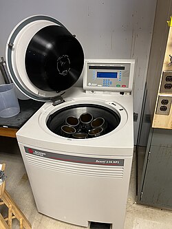 Важным инструментом в биохимических исследованиях является центрифуга, которая за счёт быстрого вращения создает высокие центробежные силы на взвешенные частицы или даже молекулы в растворе и вызывает разделение таких веществ на основе различий в весе. Таким образом, эритроциты могут быть отделены от плазмы крови, ядра — от митохондрий в клеточных гомогенатах, а один белок — от другого в сложных смесях. Белки разделяются с помощью ультрацентрифугирования — отжима с очень высокой скоростью; при соответствующем фотографировании белковых слоев по мере их формирования в поле центробежной силы можно определить молекулярную массу белков.