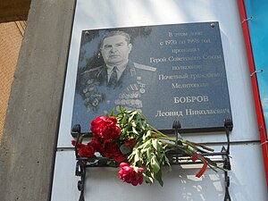 - В городе Мелитополь одна из улиц носит имя Героя Советского Союза Леонида Николаевича Боброва (улица Боброва).