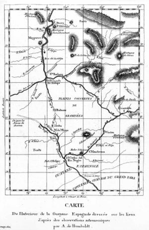 - ↑ 4,0 4,1 4,2 4,3 Гумбольдт А. Путешествие в равноденственные области Нового Света в 1799—1804 гг. — М.: Географгиз. — Т. 1: Остров Тенерифе и Восточная Венесуэла. — 1963; Т. 2: Плавание по Ориноко. — 1964; Т. 3: Страны Центральной и Южной Америки. Остров Куба. — 1969