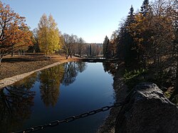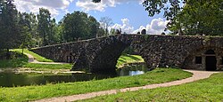 На ручье, впадающем в Тверцу, Николай Львов воздвиг арочный валунный мост. Его конструкция с арками и гротами выполнена в технике архивольт, выдвигающей дугу арки из плоскости стены. Валунный мост сложен из массивных гранитных глыб и имеет три арки. Восточный фасад моста богато декорирован арками, контрфорсами, нишами, а сторона моста, обращённая к хозяйственному пруду, представляет собой ровную стену с одной центральной аркой. В основании моста с восточной стороны устроены камеры с открытыми входными и оконными проёмами[6].