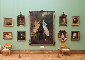 В качестве экспонатов в музеях и галереях представлены картины, на которых изображены всадники[12][20][21][22][23]: