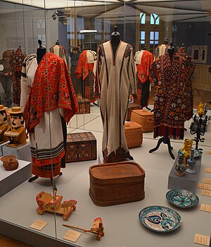 Женские рубахи и сарафаны, украшенные вышивкой, выполняли роль оберега и социального маркера, указывая на статус, возраст и семейное положение носительницы. Подзоры и занавески придавали интерьеру нарядность, создавая атмосферу уюта и праздника. Каждый предмет имел своё символическое значение: например, полотенца с изображением древа жизни вывешивались в красном углу как знак связи поколений, а свадебные рушники украшались парными птицами, символизирующими семейный союз и верность[1].
