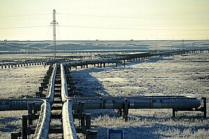 В 1992 году на базе Министерства газовой промышленности СССР была создана компания «Газпром», которой переданы все активы отрасли[14]. Это позволило сохранить единую газотранспортную систему и продолжить снабжение газом как внутреннего рынка, так и зарубежных потребителей. Ключевым направлением развития в 1990-е годы стало освоение новых месторождений и модернизация инфраструктуры. В 2001 году началась промышленная добыча на Заполярном месторождении в Ямало-Ненецком автономном округе, что компенсировало падение добычи на старых месторождениях Западной Сибири[15]. Одновременно Россия продолжила наращивать экспортные поставки: в 1999 году введён в эксплуатацию газопровод «Ямал—Европа», значительно увеличивший возможности транзита через Белоруссию и Польшу.