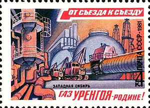 К концу 1980-х годов газовая отрасль СССР достигла небывалого развития: протяжённость газопроводов превысила 200 тысяч километров, более 60 % городов и половина сельских населённых пунктов были газифицированы. В 1984 году с объемом 590 млрд кубометров в год СССР занимал уже первое место в мире по добыче газа[13]. Природный газ активно вытеснял уголь в промышленности и коммунальном хозяйстве, способствуя улучшению экологической обстановки. Одновременно СССР превратился в крупнейшего экспортёра газа: сначала в социалистические страны Восточной Европы, а с 1970-х годов — в государства Западной Европы, включая ФРГ, Францию и Италию.
