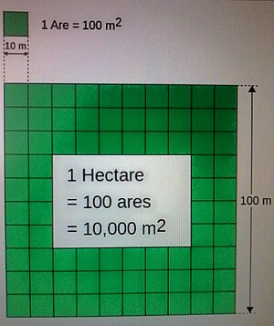Гекта́р (др.-греч. ἑκατόν «сто» + ар; символическое обозначение в Российской Федерации: га; международное обозначение: ha) — внесистемная метрологическая единица измерения площади, дефинируемая как площадь квадрата со стороной 100 метров, численно эквивалентная 104 квадратных метров[1].