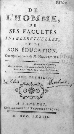 - О человеке, о его умственных способностях и его воспитании (фр. De l'homme, de ses facultes intellectuelles et de son education) (1773 год).