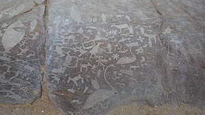 - Петроглифы, пиктограммы и протописьменность: древнейшие виды графики, представляющие собой высеченные, вырезанные или нарисованные на каменных поверхностях изображения, знаки и символы. Они создавались первобытными людьми вручную для передачи информации, украшения или ритуальных целей. Петроглифы объединяют элементы графики, символизма и декоративного искусства[17].