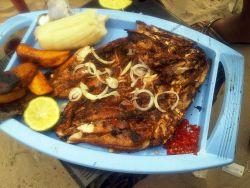 Только 3 % земель используется для орошаемого земледелия, где выращиваются традиционные африканские культуры, такие как маниока, батат и рис. Традиционные блюда у разных народов отличаются друг от друга, но во всех кухнях присутствуют фрукты, грибы, а иногда и мед[14].