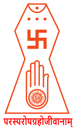 - свастика — самый характерный и наиболее значимый для джайнизма символ, четыре сегмента которого обозначают четыре высоких удела души: Бог, человек, животное и обитатель ада. Отличительной чертой джайнской свастики является изображение этого символа с тремя небольшими кружками вверху (знак «трёх жемчужин» джайнизма — правильных воззрения, знания и поведения), над которыми присутствует изогнутая в виде полумесяца линия — символ освобождения;