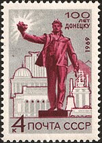 Уголь был и есть основой региональной идентичности Донбасса, и образ человека труда — шахтёра стал символом города советского периода. Изображение памятника «Слава шахтёрскому труду», расположенного на Шахтёрской площади, активно тиражировалось на сувенирной продукции, а также почтовых открытках, марках, конвертах. В XXI веке в брендинге города, как и всего региона, усилил позиции символ угольнодобывающей промышленности — шахтный террикон[20].