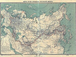 Самая протяжённая железнодорожная магистраль в мире — Транссибирская магистраль[14]. Работы велись одновременно на нескольких участках: от Челябинска через Новониколаевск (ныне Новосибирск) к Красноярску и Иркутску, а также от Владивостока в направлении Хабаровска. Полностью движение по территории Российской империи было запущено лишь после завершения строительства Амурского моста в 1916 году. Параллельно была возведена ещё одна важная стратегическая магистраль — Китайско-Восточная железная дорога, проложенная на территории Китая[15][16].