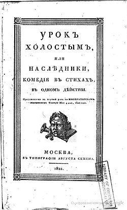 - Урок холостым, или Наследники (в стихах, 1822).