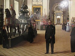 С 1842 и до смерти в 1852 году Михаил Николаевич Загоскин — директор Оружейной палаты в Кремле. По понедельникам и четвергам с 12 до 14 часов он давал сам пояснения. В залах были выставлены драгоценности, оружие, стояли восковые всадники в старинных русских доспехах (часть экспозиции того времени можно рассмотреть на картине Николая Бурдина, запечатлевшего Загоскина с сотрудниками музея.