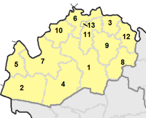 Ниже представлен список из 12 районов и 1 города областного подчинения: