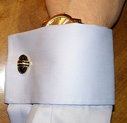 Французская манжета (двойная манжета) – состоит из двух слоёв ткани, которые сначала отгибаются вверх, оборачиваются вокруг запястья и закрепляются запонкой. Манжета из мягкой ткани складывается вдвое, изгиб не утюжится. Под такие манжеты лучше надеть тяжелые запонки, поскольку скреплять приходится несколько слоев ткани. Рубашки с французской манжетой надевают в особо торжественных случаях со смокингом[5].