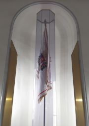 Изготовленное в единственном экземпляре, знамя города установлено в здании городской Думы и администрации города; находится оно под стеклянным колпаком на парадной лестнице здания между первым и вторым этажами. Знамя выносится из здания городской Думы и администрации города почётным караулом только на День города и в День Победы[1].