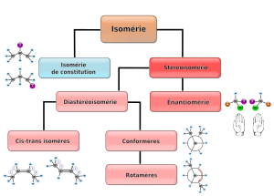 Изомеризация — процесс превращения химических соединений в изомеры — соединения другого строения, без изменения состава и молекулярной массы. При изомеризации может измениться углеродный скелет молекулы, природа функциональных групп или их положение в молекуле, геометрическая конфигурация комплексного соединения, положение кратных связей, пространственное расположение атомов или атомных групп относительно плоскости кратной связи, вокруг асимметричного центра. Также возможно образование или раскрытие, сужение или расширение цикла[8].