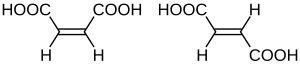 Если геометрические изомеры имеют различия пространственного расположения заместителей относительно плоскости двойной связи (чаще всего С=С и С=N) или цикла, их относят к π-диастереомерам. Например, (Е)- и (Z)-бензальдоксимы, малеиновая и фумаровая кислоты, цис- и транс-1,2-диметилциклопентаны[6].