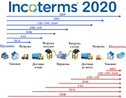 Инкоте́рмс (англ. Incoterms — от International Commercial Terms) — международные правила интерпретации торговых терминов, разработанные и публикуемые Международной торговой палатой (ICC). Они определяют обязанности, риски и расходы сторон в международной торговле — экспортёра (продавца) и импортёра (покупателя) — на этапе доставки товаров от продавца к покупателю. Инкотермс не регулируют передачу права собственности, последствия нарушения контракта или другие аспекты, не связанные с доставкой товара[1][2]. Иными словами инкотермс — это одиннадцать правил поставки, которые применяются в мировой торговле и распределяют обязанности и риски между продавцом и покупателем[1].