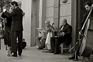 Когда начинается милонга — вечеринка с аргентинским танго, люди ищут себе пару для танца. Никто не говорит слов, всё происходит с помощью взглядов и жестов. Сначала все слушают музыку. Если кто-то хочет танцевать, он выбирает мелодию, которая ему нравится[3].
