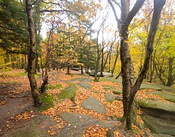 Национальный парк характеризуется многообразием природных типов растительности и различных форм землепользования. Основной растительный покров парка представлен смешанными мезофильными лесами, занимающими около 80 % территории. Леса характеризуются наличием разнообразных лиственных деревьев, адаптированных к умеренным условиям влажности. Наиболее распространённые ассоциации лесов включают американский орех, клён, дуб и другие. Крупные лесные массивы соседствуют с сильно фрагментированными зонами, а между лесами располагаются старые поля, луга и водно-болотные угодья. В парке также присутствуют застроенные территории, такие как жилые районы, поля для гольфа и горнолыжные курорты. Сельскохозяйственная деятельность в парке практически отсутствует[5].