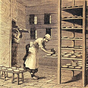 В течение следующего столетия потомки Мари совершенствовали рецепт, адаптируя его к местным условиям. В 1863 году этот сыр был представлен Наполеону III от деревни Камамбер в Нормандии. Императору настолько понравился продукт, что он закрепил за ним это название. Вскоре камамбер завоевал парижский рынок. Семья Арель расширила производство и стала отправлять сыры в столицу по железной дороге[2].