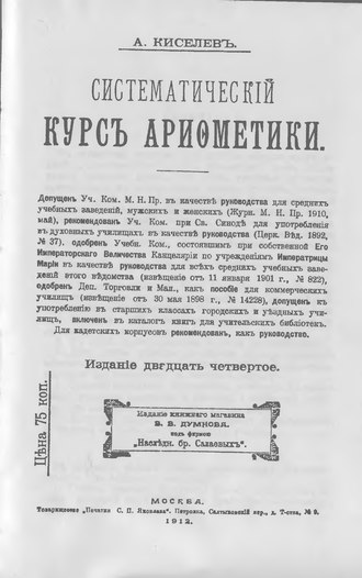 - Киселёв А. П. Систематический курс арифметики. — 1915.