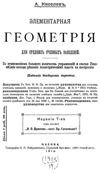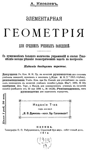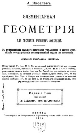 - Киселёв А. П. Элементарная геометрия. — 1892—1893.