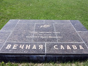 - На одной из надгробных мемориальных плит легендарного Мамаева кургана высечено имя Героя Советского Союза, командира танковой роты, лейтенанта Ивана Ивановича Клименко[1].