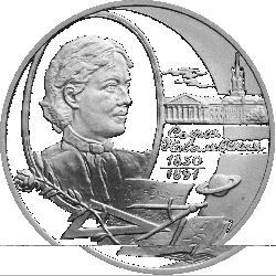 - ↑ 2 рубля 2000 года «Ковалевская С. В., 150 лет со дня рождения». «Деньги России». Дата обращения: 25 июля 2023.
