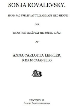 - ↑ Леффлер А.Ш. Софья Ковалевская: что я пережила с ней и что она рассказывала мне о себе / Перевод со шведского М.Лучицкой. — Ижевск: Удмуртский гос.ун-т, 2000. — С. 34.