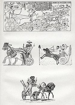 Самым крупным сражением на колесницах в истории считается Битва при Кадеше (1286 год до н. э.), где участвовало пять тысяч колесниц со стороны египтян и хеттов[2].